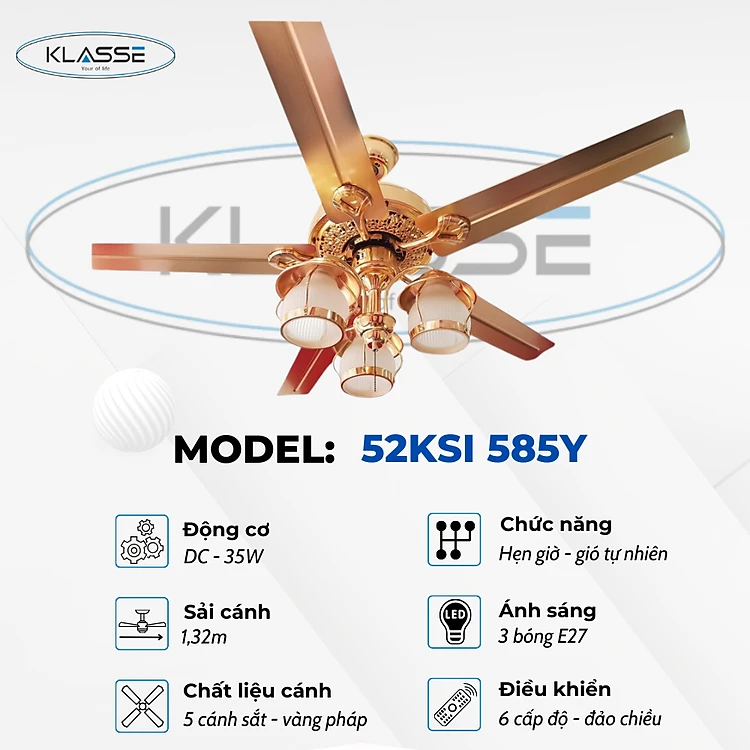 Quạt trần chùm đèn Klasse 52KSI 585Y hàng chính hãng