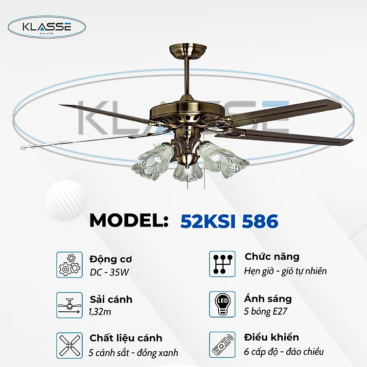 Quạt trần chùm đèn Klasse 52KSI 586 Hàng chính hãng
