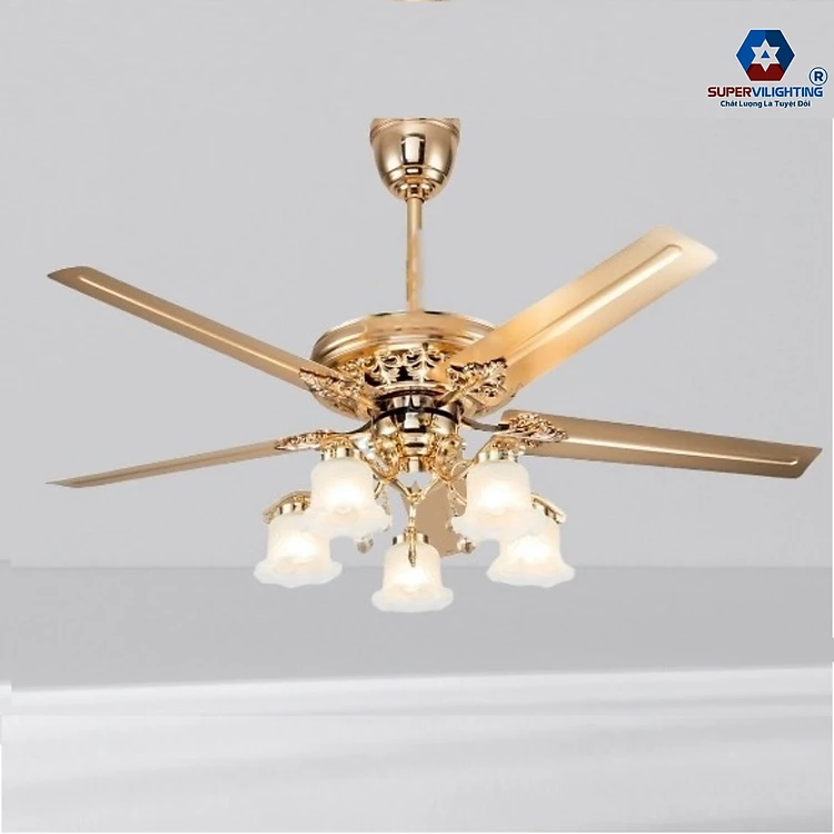 Quạt trần đèn SuperVilighting QTR-103 5 cánh sải 1,32m trang trí phòng khách phòng ngủ BH 48 tháng.