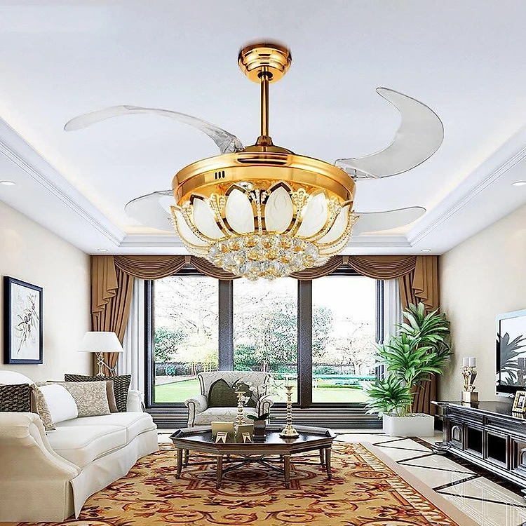 Quạt trần đèn kết hợp pha lê phong cách sang trọng Q02