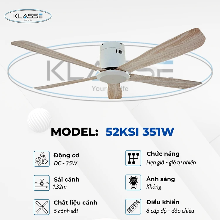 Quạt trần không đèn Klasse 52KSI 351W Hàng chính hãng