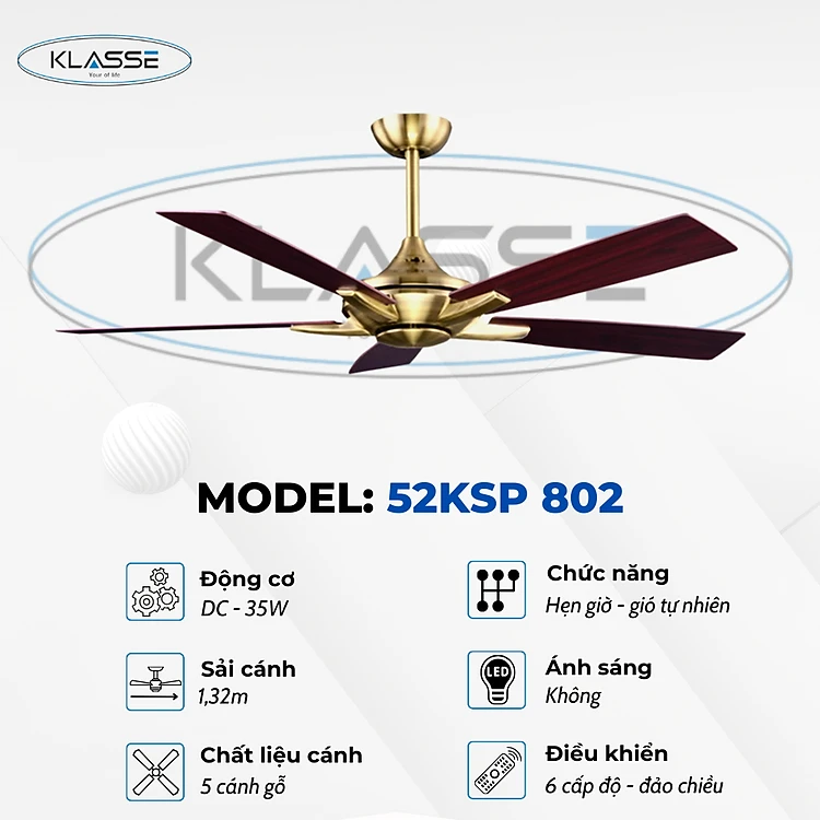 Quạt trần không đèn Klasse 52KSP 802 Hàng chính hãng