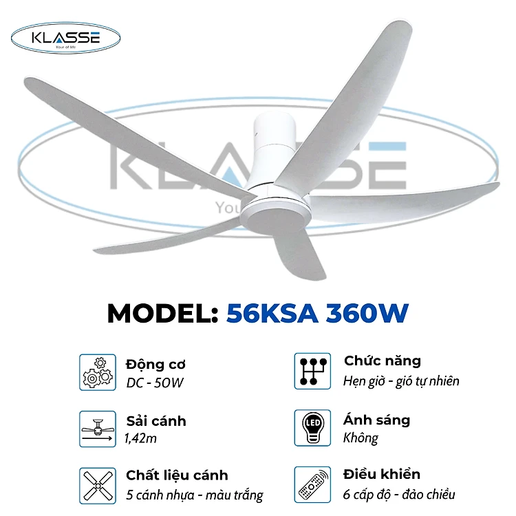 Quạt trần không đèn Klasse 56KSA 360W Hàng chính hãng