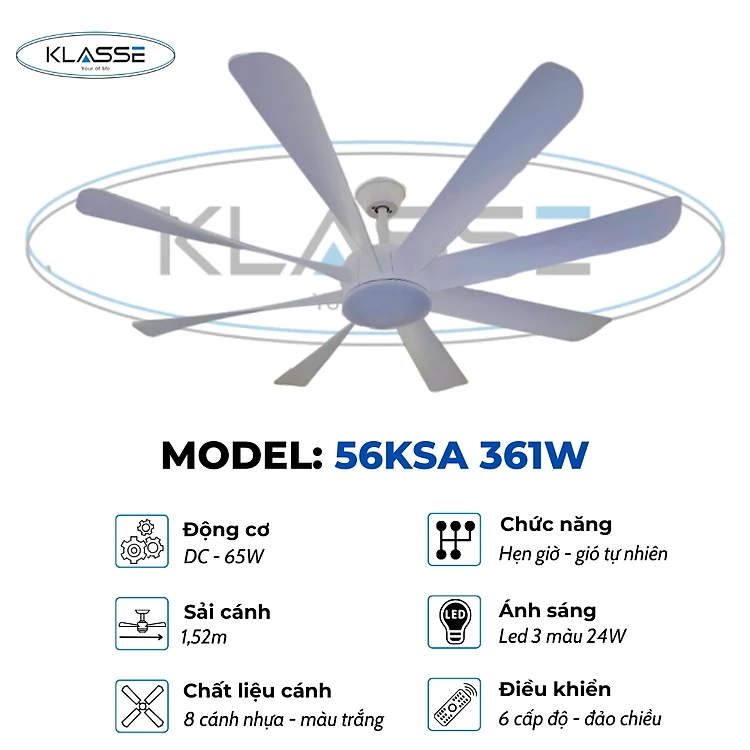 Quạt trần một đèn Klasse 56KSA 361W Hàng chính hãng