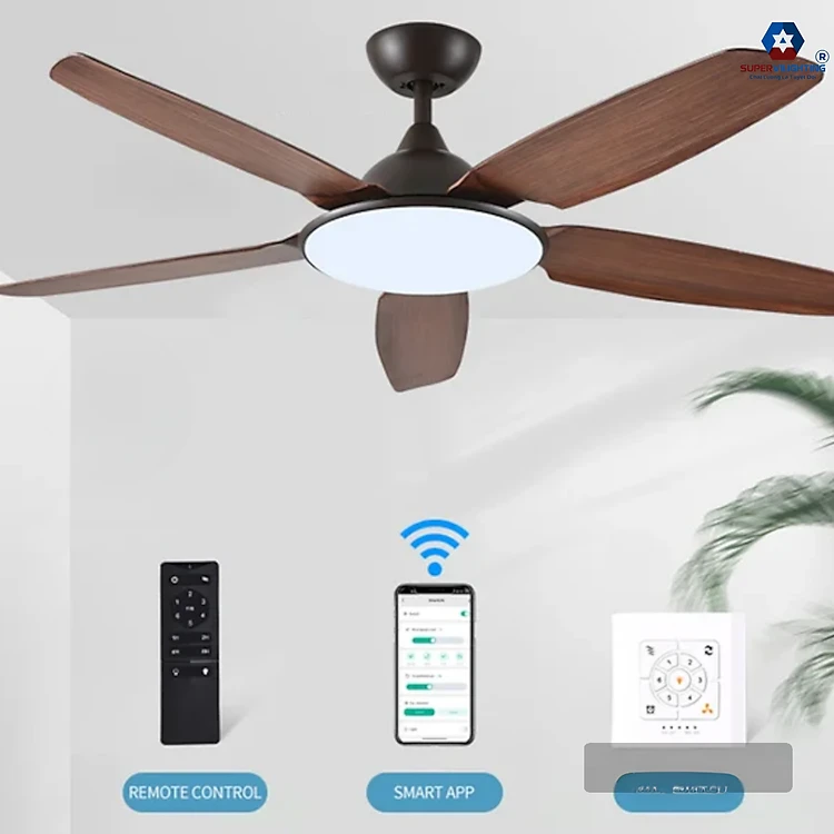 Quạt trần phòng ngủ 5 cánh trang trí điều khiển từ xa Supervilighting hàng chính hãng 810 phong cách hiện đại