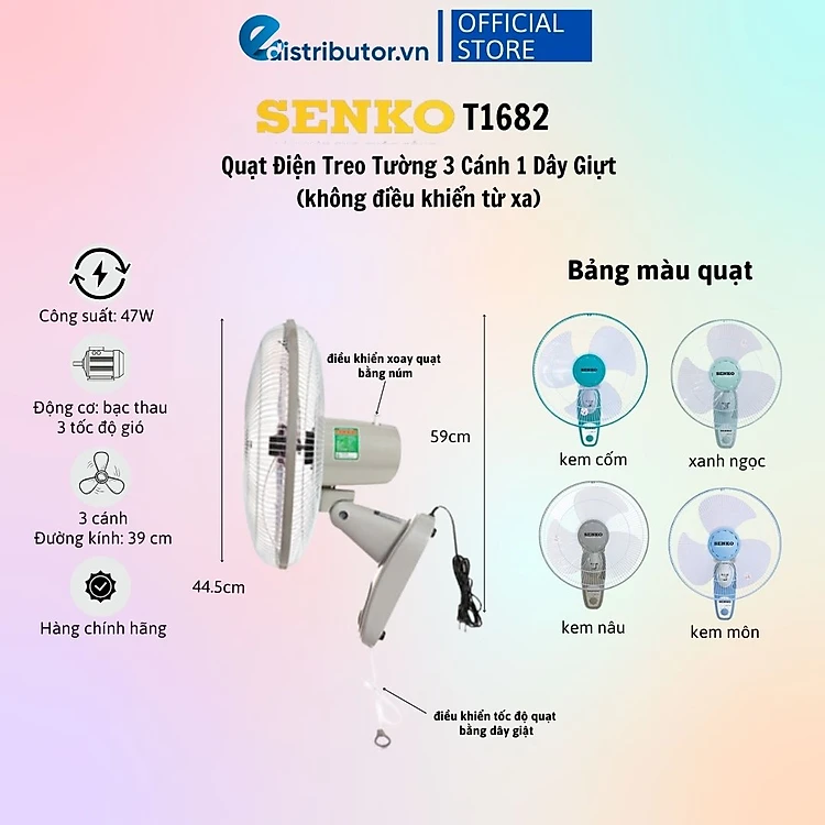 Quạt Treo Remote SENKO TR1683 ( Có Remote) / TR1628 (Có Điều Khiển Từ Xa) - Quạt T1682 / T1680 ( Không Có Điều Khiển Từ Xa) - Hàng Chính Hãng - Bảo Hành 12 Tháng - Quạt Treo Tường Senko Có Remote TR1628 (Tương tự mã TR1683)