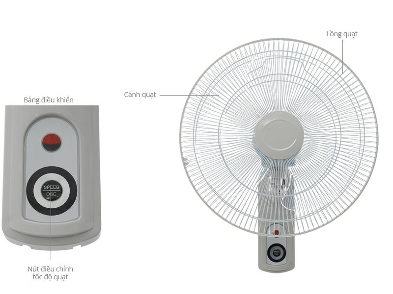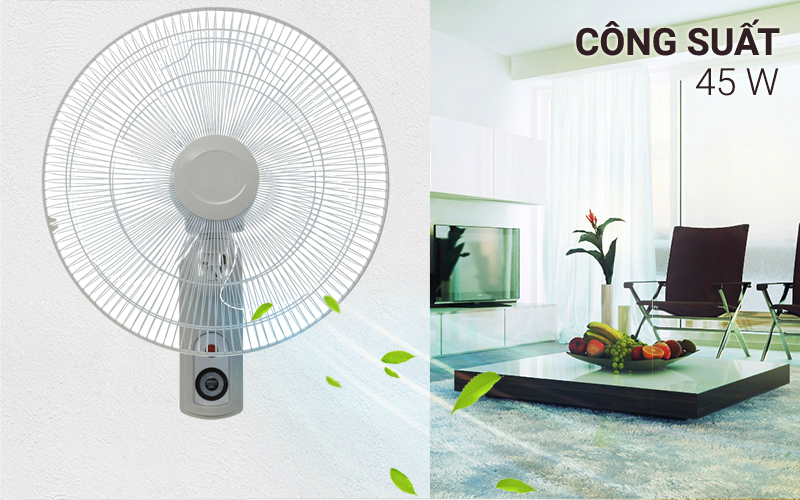 Quạt được trang bị 3 cánh quạt với đường kính 40cm cùng với công suất hoạt động 45W, đem đến hiệu quả làm mát rộng. Thiết bị hỗ trợ chế độ đảo gió trái phải, giúp làn gió mát lan tỏa khắp không gian phòng.
