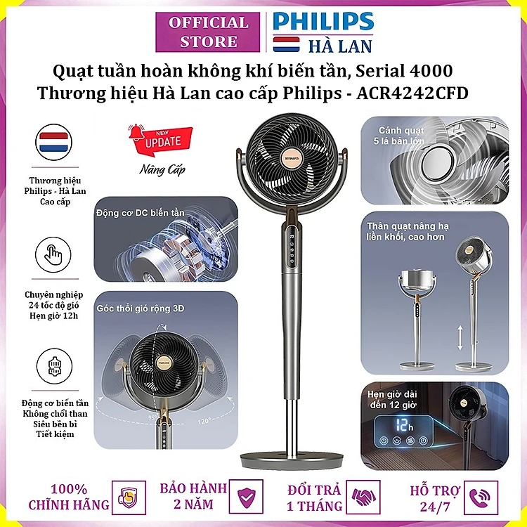 Quạt tuần hoàn không khí 3D động cơ biến tần cao cấp thương hiệu Hà Lan Philips ACR4242CFD Serial 4000 - Hàng nhập khẩu