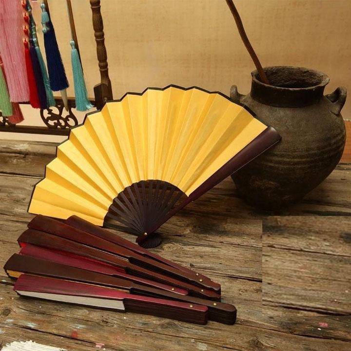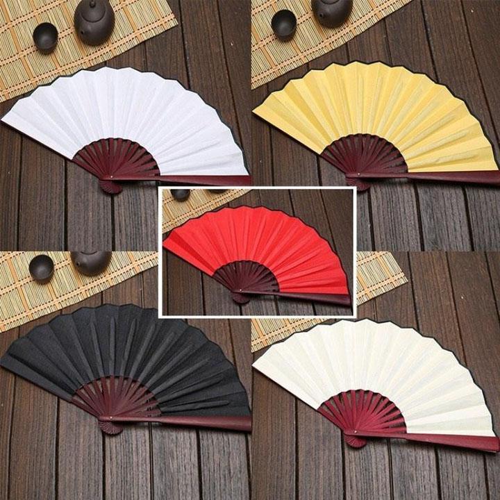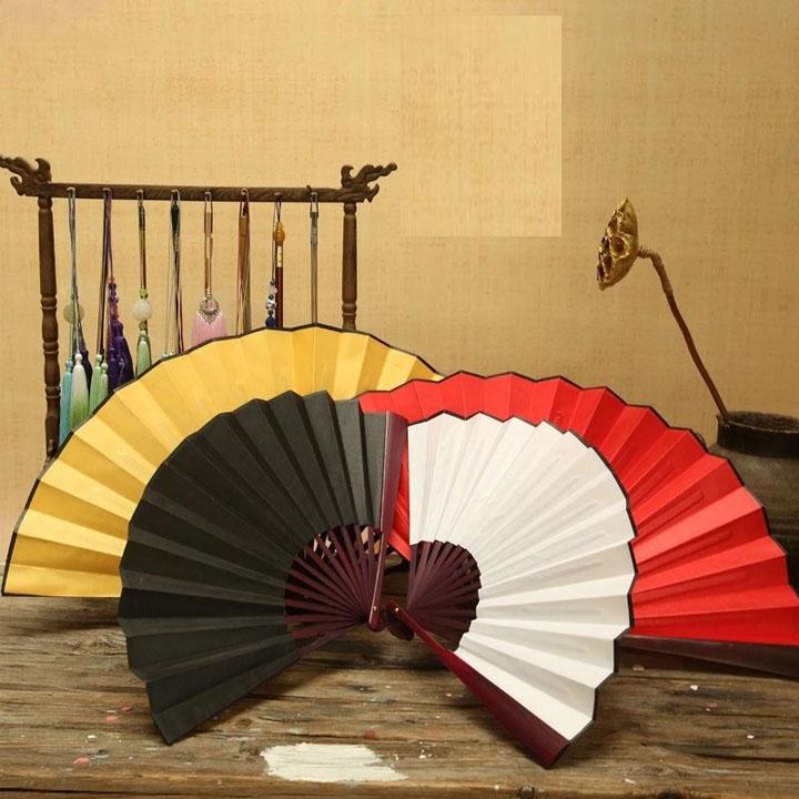 Quạt xếp cổ trang nam cầm tay trắng đen đỏ vàng múa quạt nan 31cm quà tặng trưng bày