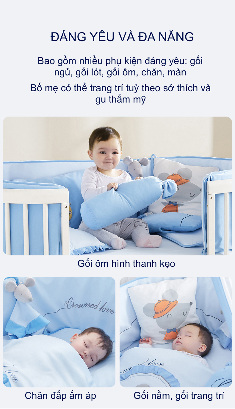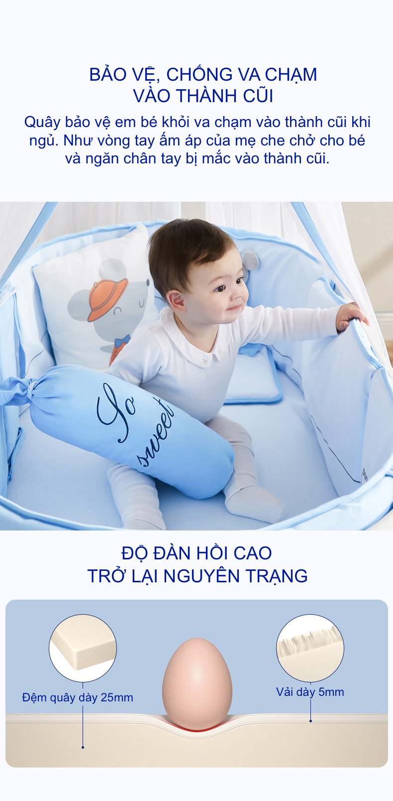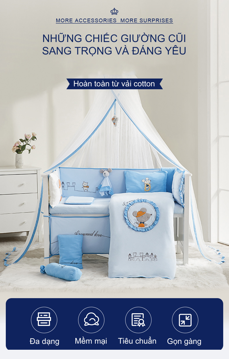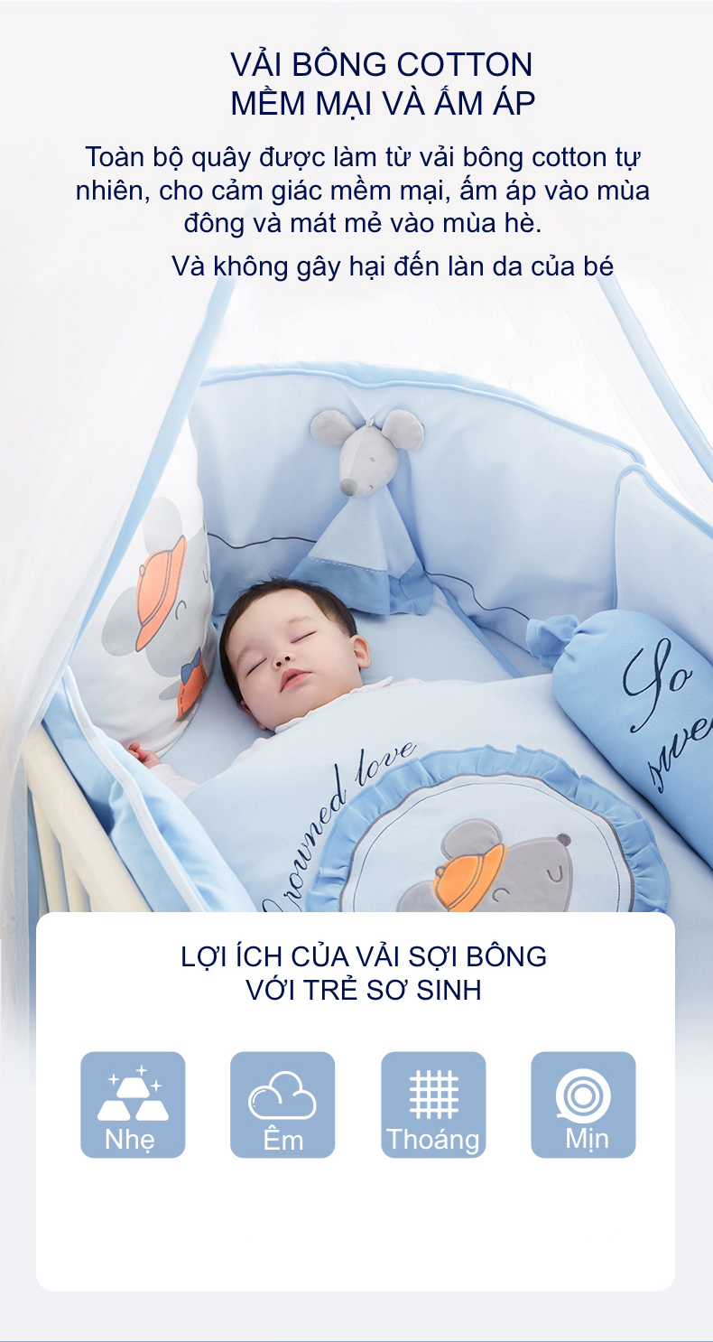 Quây Cũi Cotton Cho Bé - Nhiều Kích Thước, Sử Dụng Cho Nhiều Loại Cũi (Nôi, giường cũi, võng)