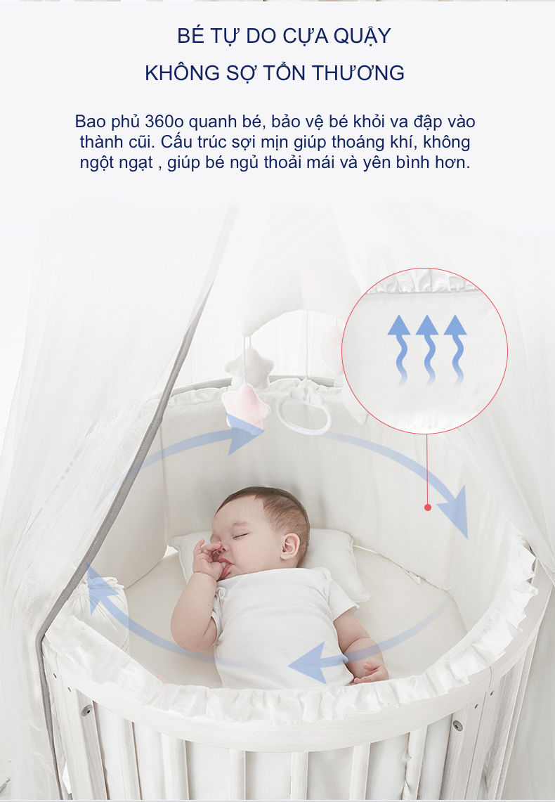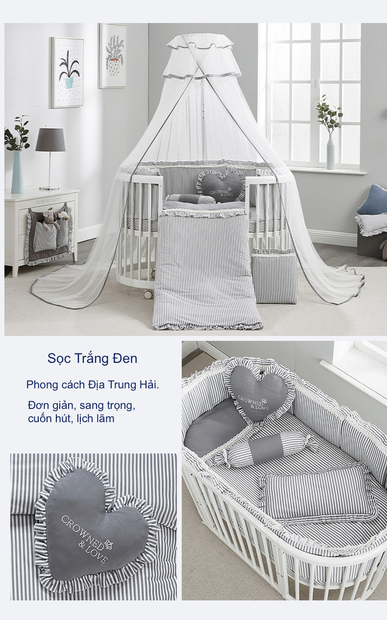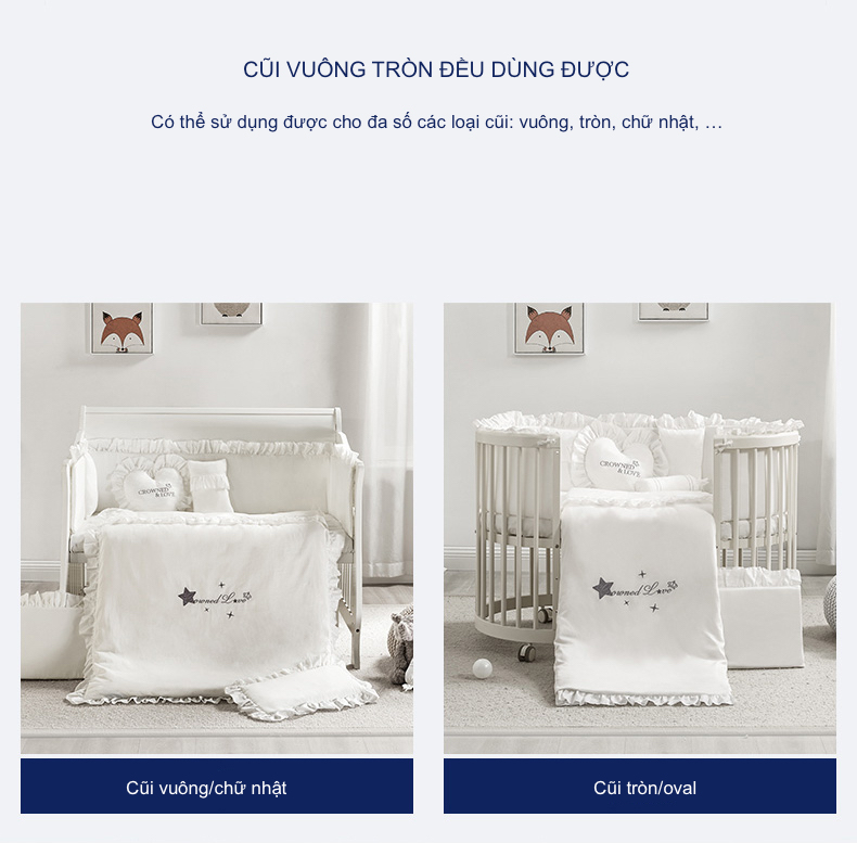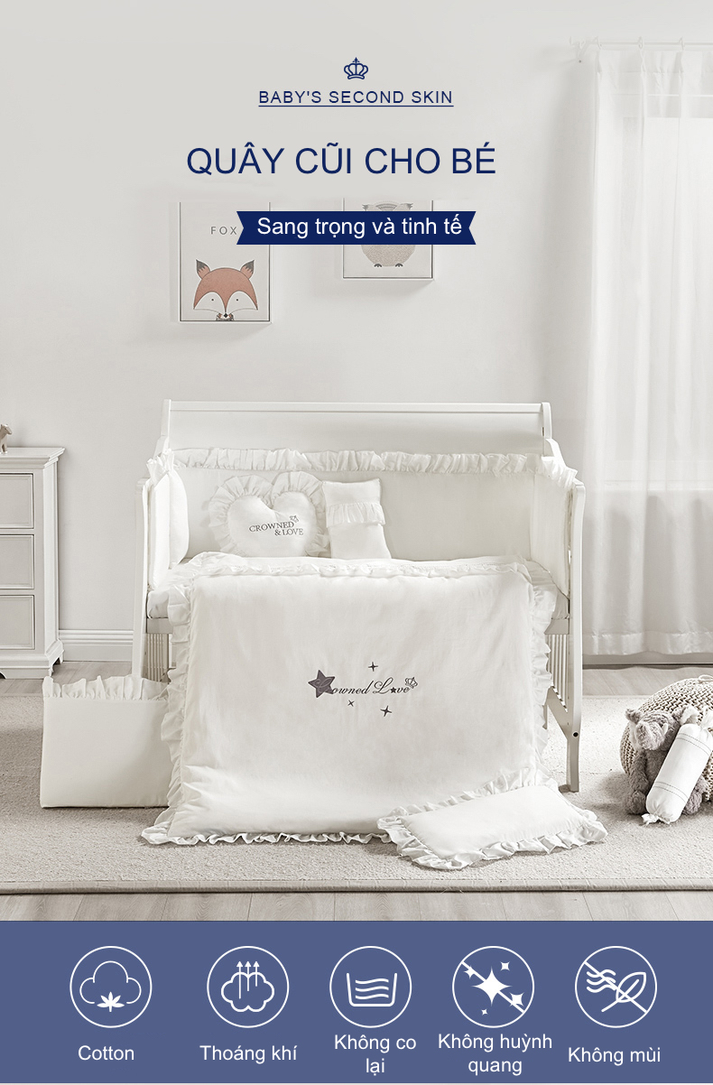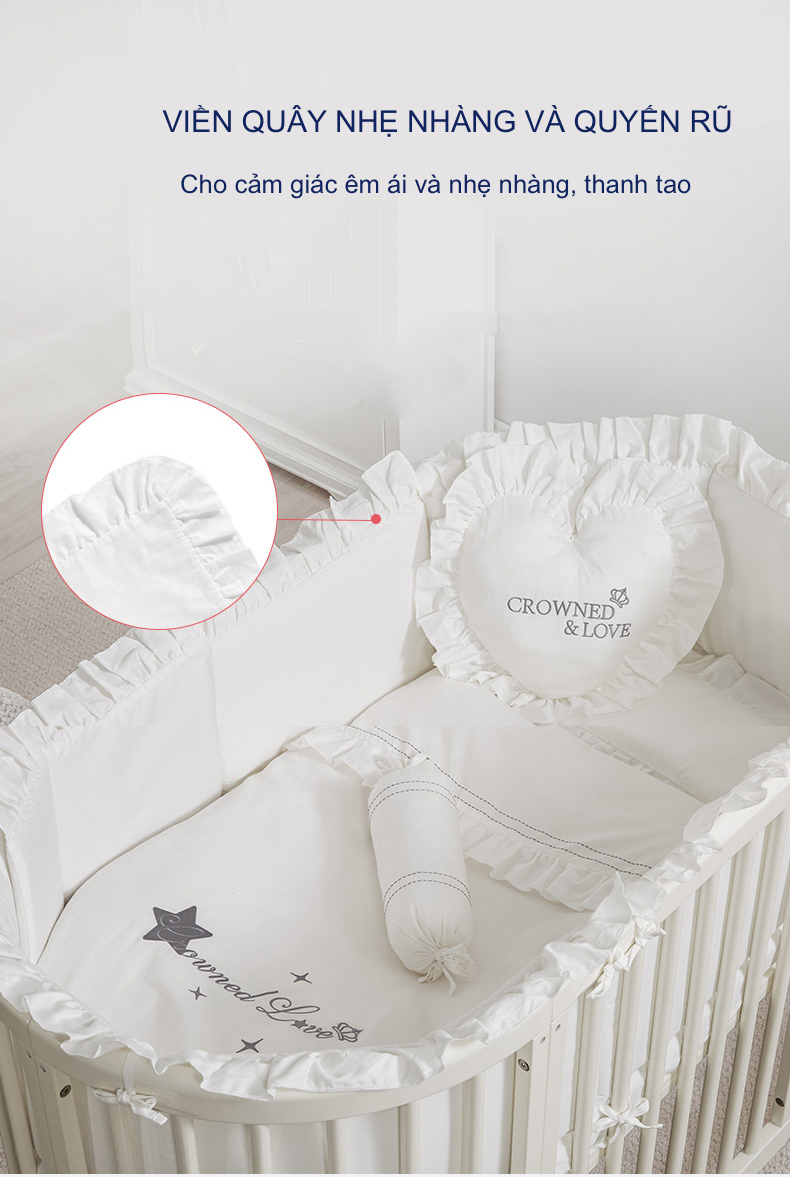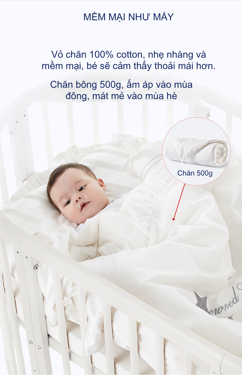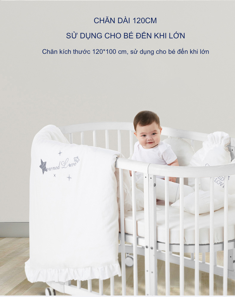 Quây Cũi Cotton Sợi Bông Cho Bé - Cho Cũi Kích Thước 120*65 cm Hoặc Nhỏ Hơn