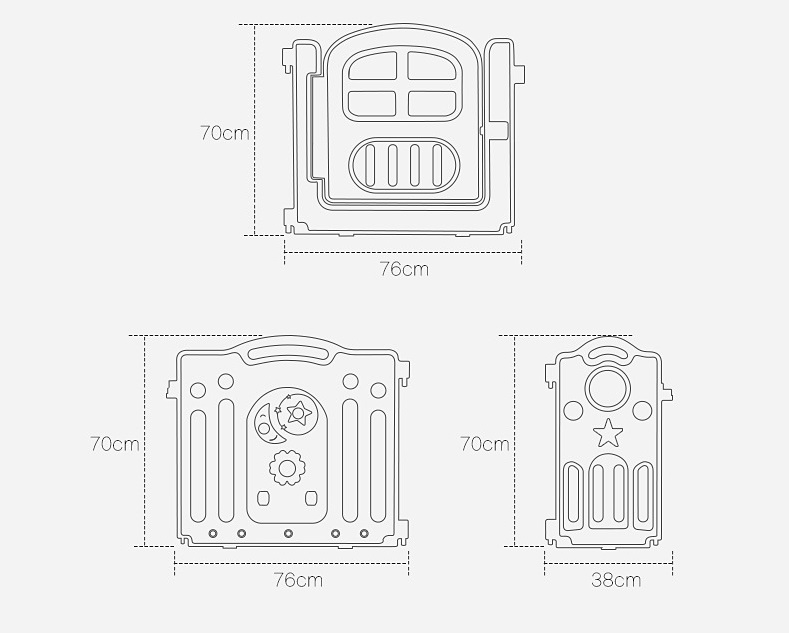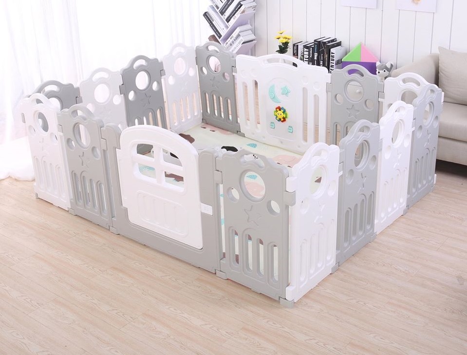 Quây cũi với tấm nhỏ chiều ngang 51 cm, 01 tấm đồ chơi và 01 tấm cửa lớn - chiều ngang 76cm