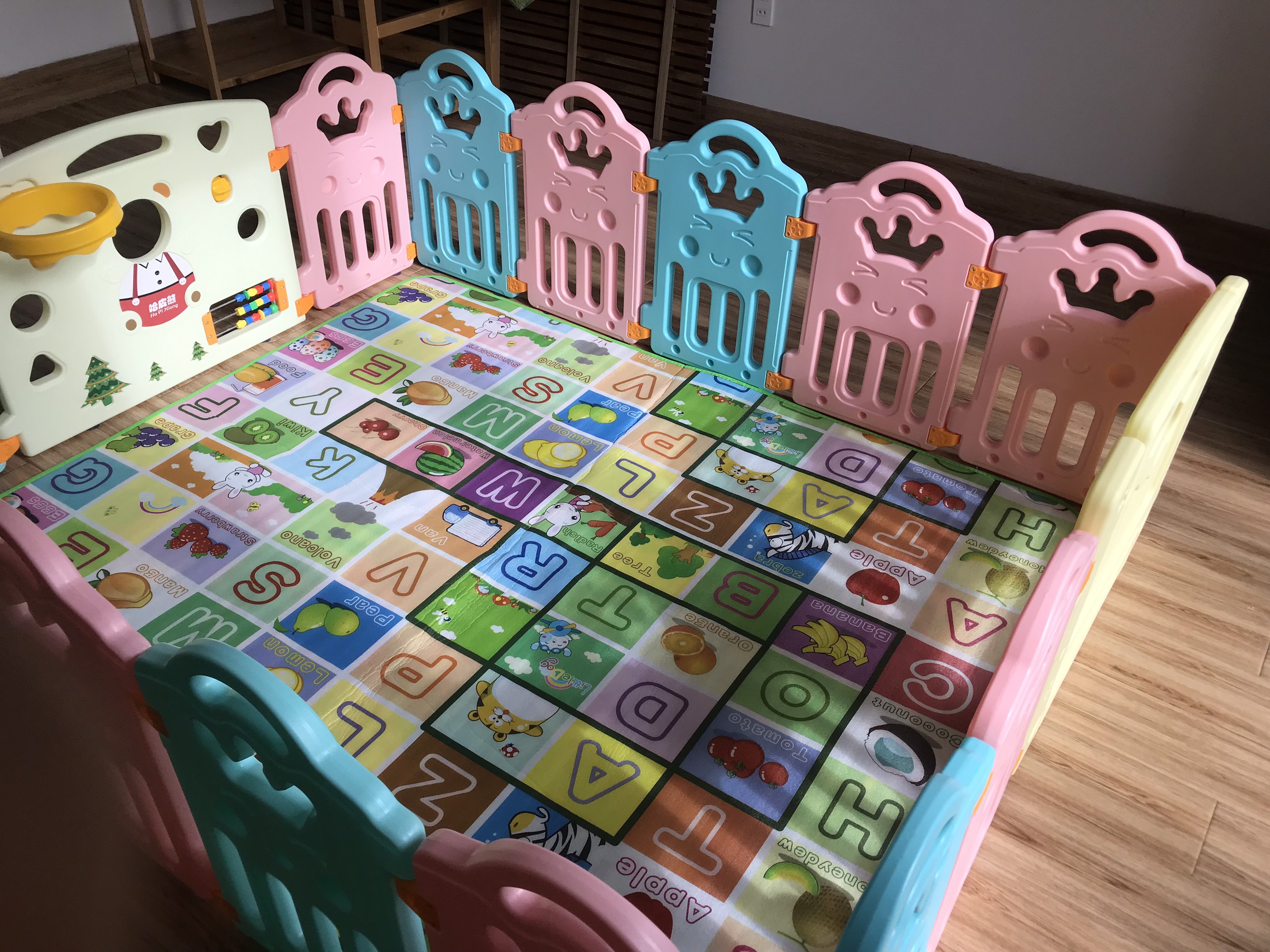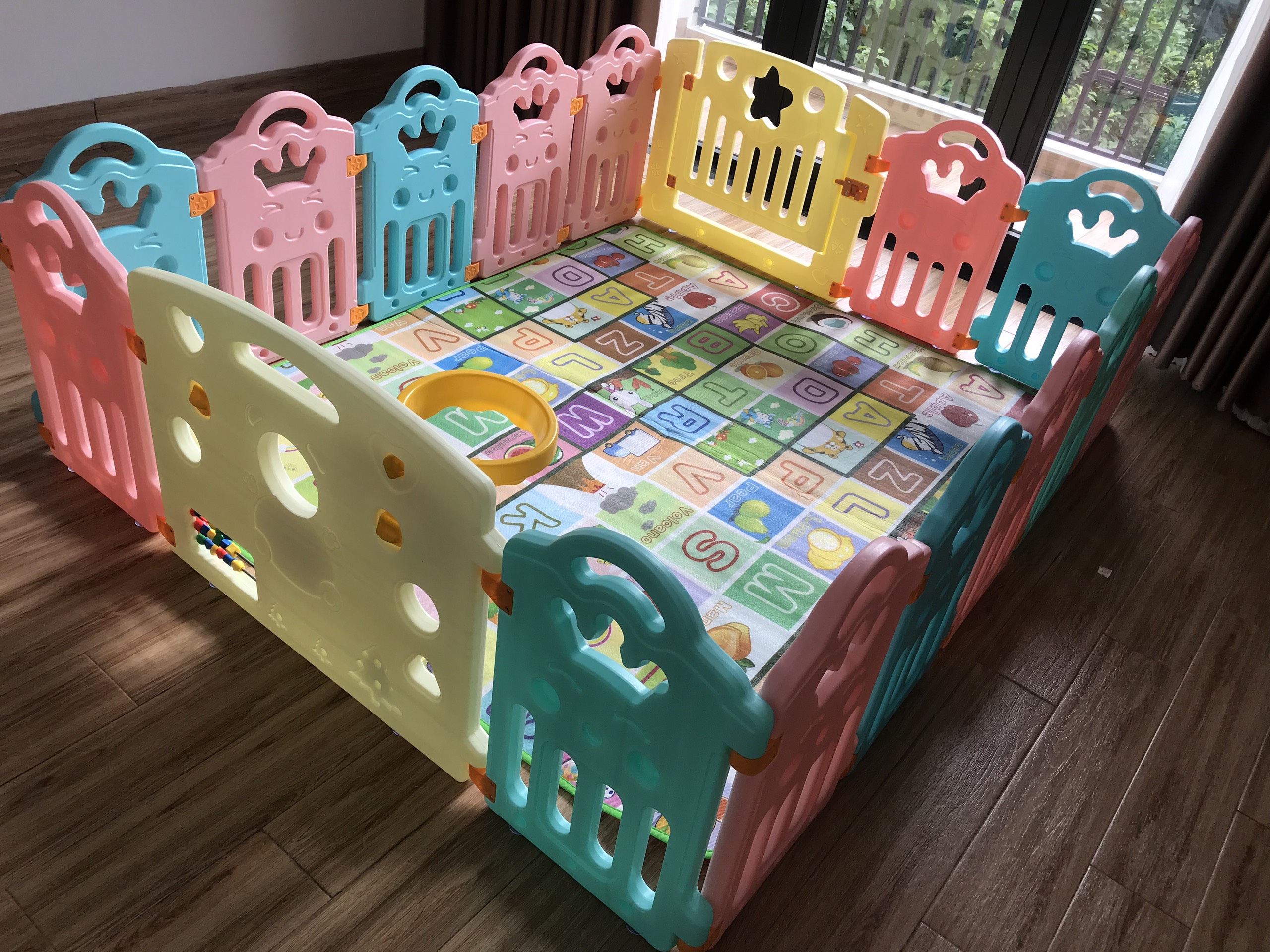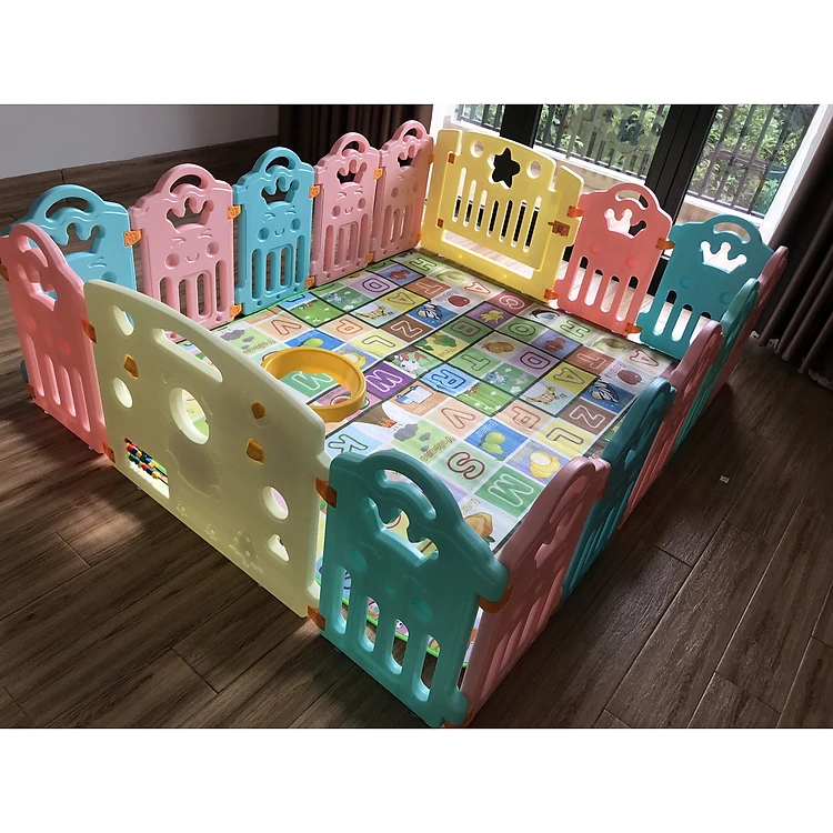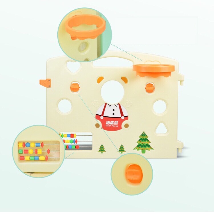 Tấm lớn có tích hợp trò chơi bóng rổ giúp bé chơi vui hơn trong quây cũi
