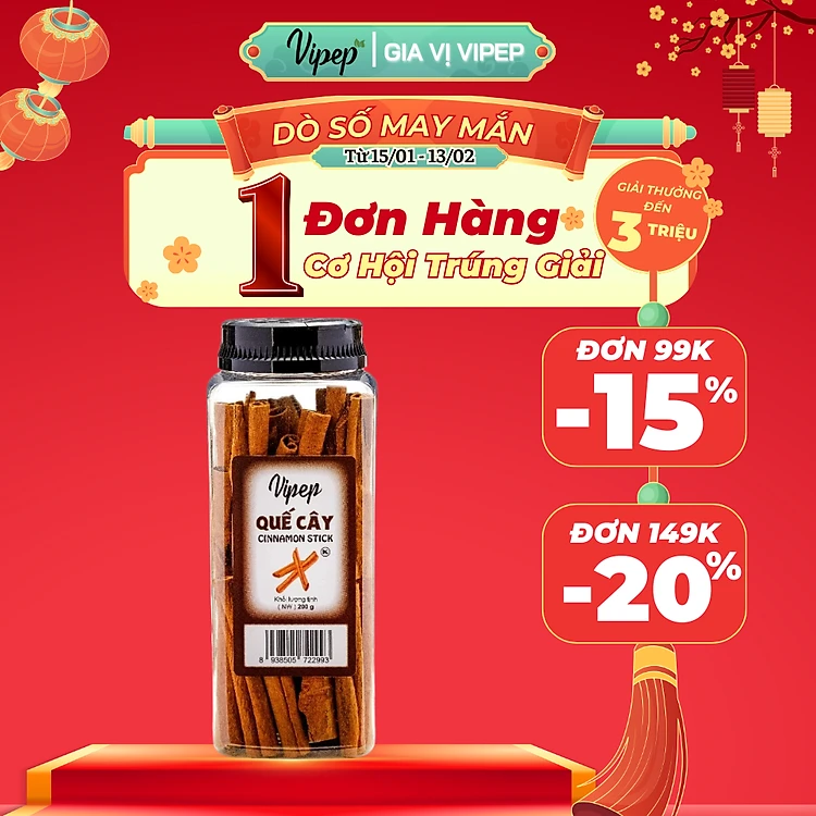 Quế Cây Tự Nhiên Vipep Hũ Nhựa 200g