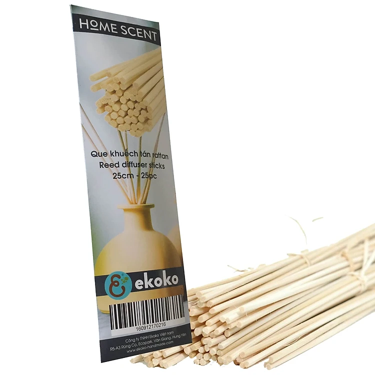 Que khuếch tán tinh dầu được làm từ nguyên liệu tự nhiên (mây), có những lỗ nhỏ giúp việc khuếch tán hiệu quả nhất, que không dùng hóa chất nên cần giữ túi khô - kín sau khi mở để tránh ẩm mốc.