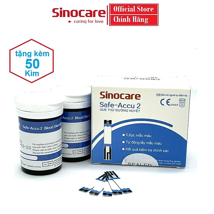 Que Thử Đường Huyết Cho Máy Safe Accu 2 50 Que Thử + 50 Kim Chích Máu