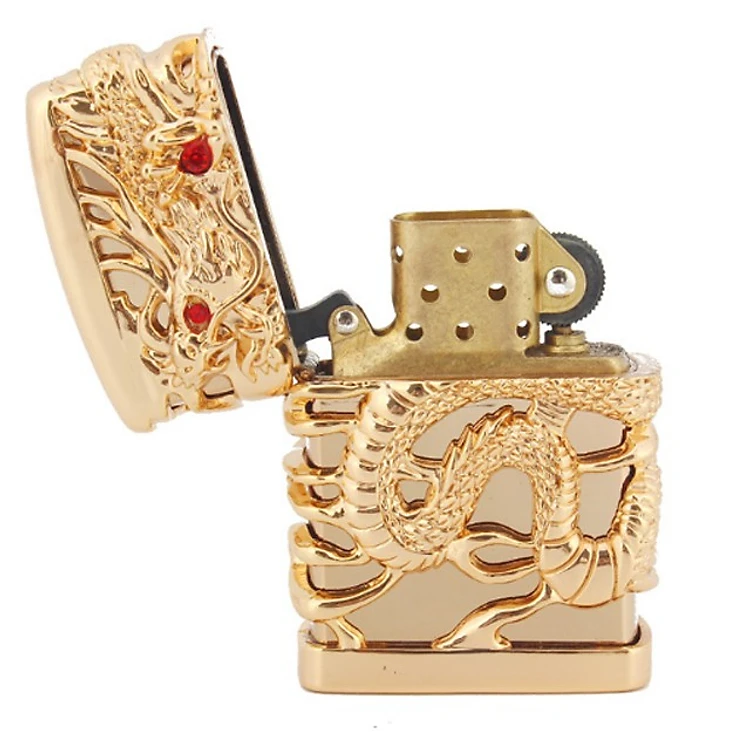 Quẹt Vỏ Hột Quẹt Bật Lửa Rồng Quấn Ôm Ngọc Chief CF0984J Dùng Xăng Bấc Đá Chuyên Dụng - Nhiều Màu (KHÔNG CÓ XĂNG)