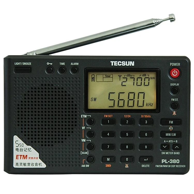 - TECSUN PL-380 với chức năng mới - ETM (Chế độ điều chỉnh dễ dàng),chức năng này tương tự như ATS (Bộ điều chỉnh tự động).ETM có thể quét qua toàn bộ băng tần và chọn tất cả các đài hiện có. Tuy nhiên, không giống như ATS, ETM sẽ không lưu trữ hoặc thay thế những bộ nhớ cũ đó bằng lần quét mới.