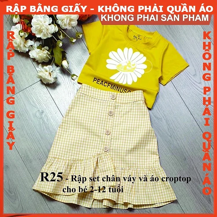 Rập giấy A0 set chân váy áo croptop bé gái mã R25 (BẢN VẼ)
