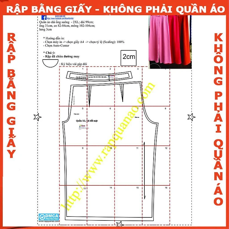 Rập giấy may quần mặc áo dài cách tân 3cm (BẢN VẼ)