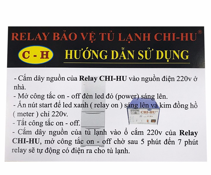 Thiết bị bảo vệ tủ lạnh Relay CHI-HU P.30A được thiết kế hoàn chỉnh, hoạt động chính xác tin cậy. Với Relay CHI-HU P.30A tủ lạnh của bạn sẽ tuyệt đối an toàn làm việc lâu bền, tránh được các sự cố về điện không bị nghẹt ga.