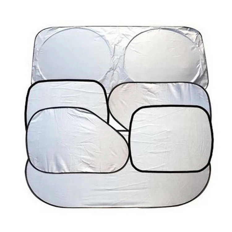 Bộ rèm chống nóng được thiết kế vừa vặn: đủ bộ che mui và 4 mặt kính hông và kính trước, các tấm có kích thước khác nhau: tấm lớn 150 x 70 cm; 1 tấm che kính lớn 150 x 50 cm; 2 tấm che kính bé 44 x 36 cm; 2 tấm che kính dài 65 x 38. Bộ sản phẩm sử dụng được trên hầu hết các loại xe con, và một số loại xe 7 chỗ khác.