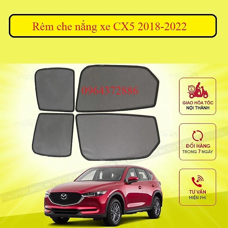 Rèm che nắng ô tô Mazda Cx5 2018- 2022, che nắng hút nam châm theo xe, bộ 4 cánh