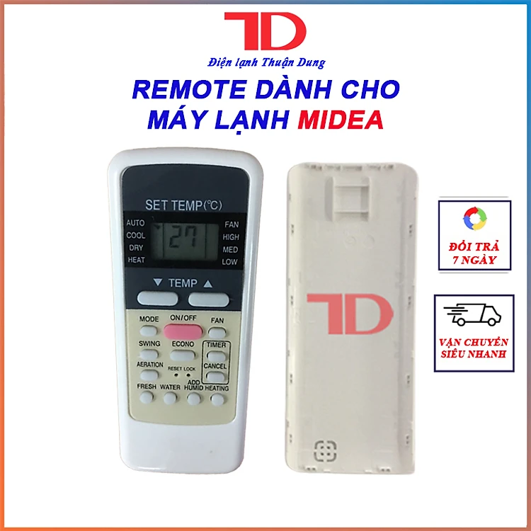 Remote dùng cho máy lạnh MIDEA, điều khiển dùng cho máy lạnh MIDEA, TẶNG KÈM PIN, hàng chính hãng, Điện Lạnh Thuận Dung
