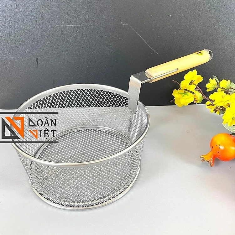 RỔ CHIÊN KHOAI TÂY, GÀ RÁN tay cầm gỗ 22 cm - INOX không rỉ, viền inox chắc chắc. Chuyên phục vụ Sp Gia dụng, Khuôn làm