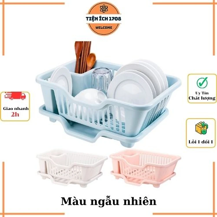 Rổ (Khay) Úp Chén Dĩa Có Khay Đựng Nước - Giao màu ngẫu nhiên