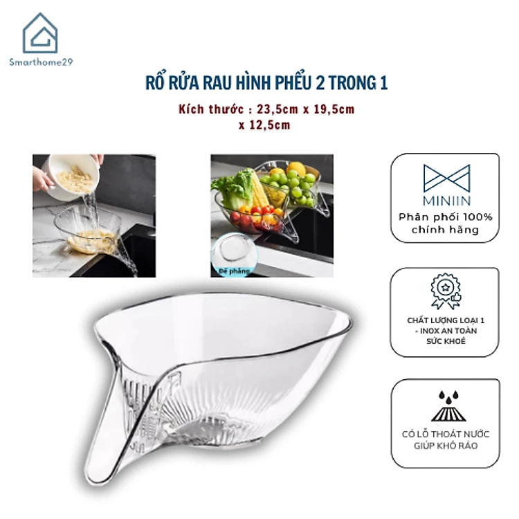 Rổ Nhựa Rửa Rau Củ Quả Có Phễu Thoát Nước Tiện Lợi - Rổ Vo Gạo Rửa Rau Củ Quả Trong Suốt Tự Động Thoát Nước Tiện Lợi Cho Nhà Bếp - Rổ Đa Năng 2 Trong 1 - HÀNG CHÍNH HÃNG MINIIN