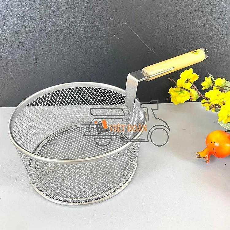 Vợt vớt Chiên SIZE LỚN 22cm. RỔ VỚT XƯƠNG, RỔ LƯỚI CHIÊN KHOAI TÂY, GÀ RÁN, HẢI SẢN tay cầm gỗ 22 cm - INOX không rỉ, viền inox chắc chắc