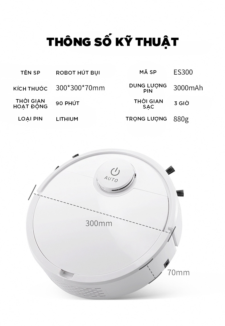 Robot Hút Bụi AION ES300 - Hút Cực Mạnh, Hút Lông Chó Mèo, Siêu Sạch, Pin Lâu, Ít Ồn - Hàng Chính Hãng