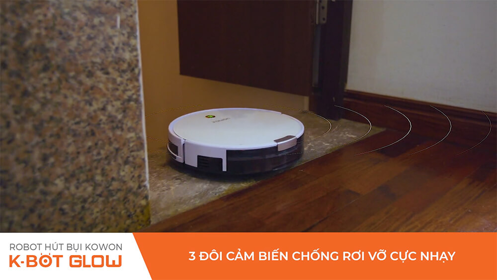 Không chỉ có vậy, Robot cũng được trang bị thêm cảm biến chống rơi vỡ ở mặt trước và mặt dưới của robot giúp K-bot Glow nhận biết những vị trí có chênh lệch độ cao lớn và không đi vào khu vực đó.