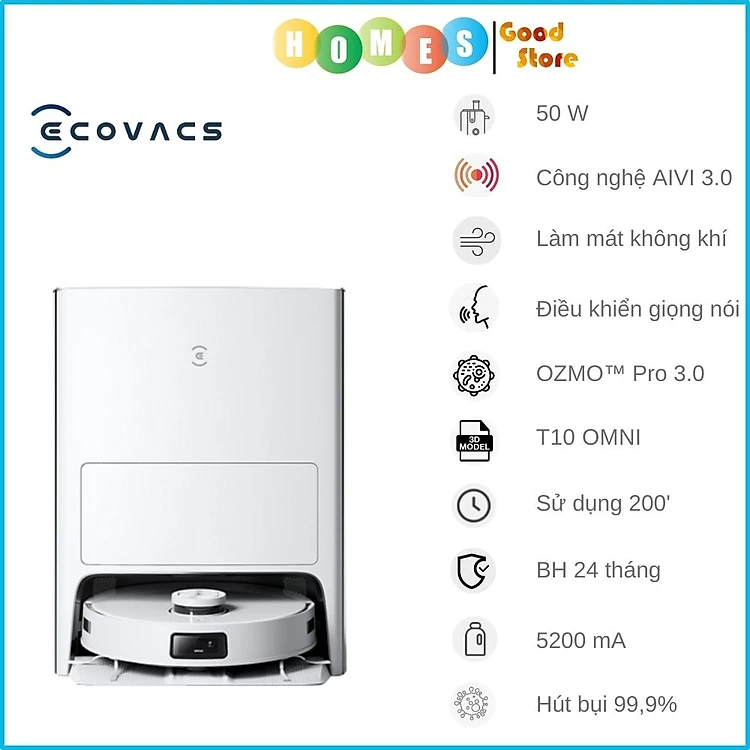 Bộ xử lý AI chuyên biệt mạnh hơn 16 lần và chứa sức mạnh tính toán AI nâng cao với khả năng nhận dạng đối tượng nhanh hơn, chính xác hơn và nhiều loại hơn để cho phép dễ dàng tránh chướng ngại vật và ít bị rối hoặc kẹt hơn. AIVI 3.0 có tính năng nhận dạng thông minh có thể tự động xác định 18 * khác nhau các loại đồ vật trong nhà, chẳng hạn như đồ nội thất, vật liệu nền và các đồ vật khác. * Dữ liệu đến từ phòng thí nghiệm ECOVACS. DEEBOT T10 OMNI được trang bị công nghệ AIVI 3.0 và máy ảnh RGB cấp độ chụp ảnh thiên văn, có thể nhận dạng con người và các loại vật thể khác nhau, bao gồm: tất, giẻ lau, giày, dây cáp, ghế hình chữ U, đế sạc, thùng rác, thảm trải sàn, giường , ghế sofa, bàn cà phê, ghế đẩu, cửa ra vào, tủ TV, bàn ghế ăn, vật nuôi và vật liệu lát sàn. Danh sách các đối tượng nhận dạng sẽ tiếp tục được cập nhật. Hiệu suất thực tế của sản phẩm phụ thuộc vào môi trường và hình dạng của các đối tượng.