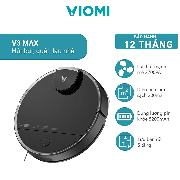 Robot Hút Bụi Lau Nhà Thông Minh Viomi V3 MAX Lưu Bản Đồ 5 Tầng - Bản Quốc Tế - Hàng Chính Hãng