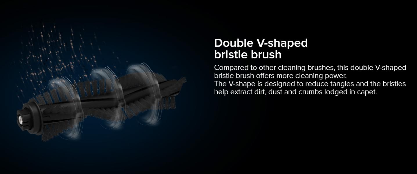 A4s đươc trang bị bàn chải dạng Double V, gom bụi và các loại rác khác nhau vì vậy có thể làm sạch sâu sàn cũng như thảm. Bàn chải dạng Double V cũng là dạng bàn chải rất khó bị quấn lông, tóc.