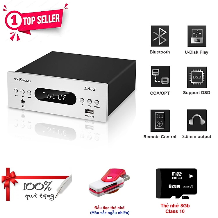 ROGTZ - Bộ Giải Mã Trasam DAC 2PRO Chip SA9926 Bluetooth 4.2 Kết nối đa dạng Coaxial Optical USB Hỗ trợ đọc USB Biến áp riêng biệt Chất âm ấm áp Bass chắc Amply mạnh mẽ Thiết kế sang trọng - Hàng Chính Hãng