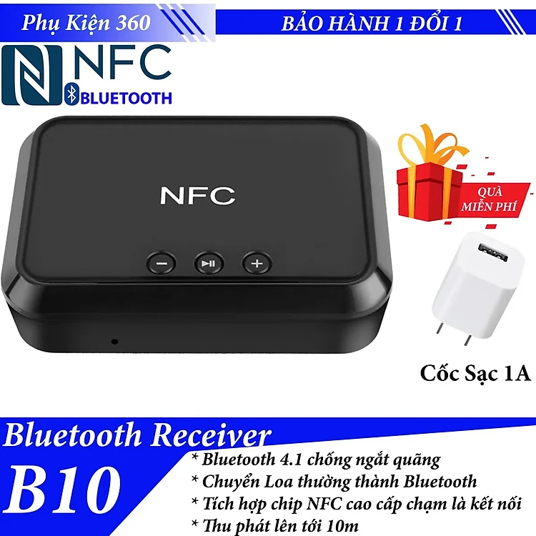 ROGTZ - Bộ Nhận Bluetooth NFC BL-B10 - Bluetooth 4.1, Phạm vi hoạt động 10m, Nguồn DC 5V/2A, Cổng kết nối Bluetooth USB RCA 3.5mm, Hỗ trợ NFC, Phát nhạc từ USB, Âm thanh chất lượng cao, Kết nối dễ dàng - Hàng Chính Hãng