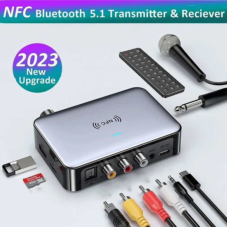 ROGTZ - Bộ Thu Phát Âm Thanh Bluetooth Đa Năng M16 Pro NFC 5.1, Giao Thức A2DP/AVRCP/HFP/SBC, Phạm Vi Hoạt Động 30m, Màn Hình LED, Chip DAC, Pin Lithium Ion 1200mah, Kết Nối Đa Dạng AUX 3.5mm, RCA, Optical, Coaxial, USB, TF, Mic 6.5mm - Hàng Chính Hãng
