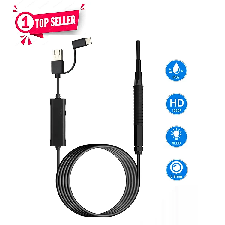 ROGTZ - Camera Nội Soi Tai Mũi Họng AN103 Hình Ảnh HD Sắc Nét Tích Hợp Đèn LED Tiện Ích 3 Trong 1 USB Micro USB TypeC Kết Nối Dễ Dàng Android Window Bộ Đầu Lấy Ráy Tai Sức Khỏe Tai Mũi Họng Tại Nhà Trẻ Em Phụ Huynh - Hàng Chính Hãng