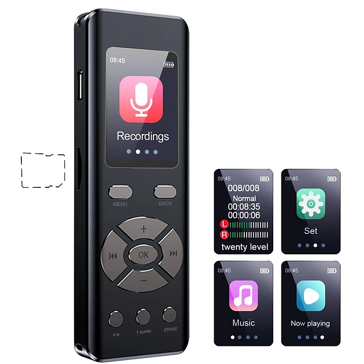 ROGTZ - Máy Thu Âm Chuyên Nghiệp V3/A903 Màn hình TFT 1.44 inch Giao diện Type-C USB2.0 Thẻ TF (hỗ trợ tối đa 64G) Pin Polymer 3.7V 400mAh Lọc tạp âm Định dạng nhạc MP3/WAV/WMA/APE/FLAC Định dạng ghi MP3/WAV Phát nhạc 10-20h - Hàng Chính Hãng