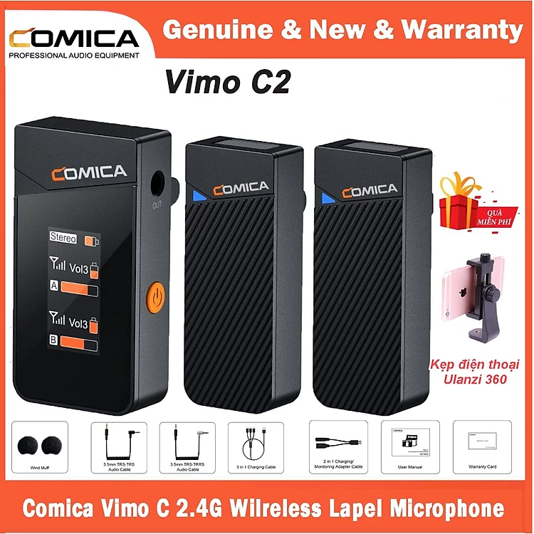 ROGTZ - Micro Thu Âm Không Dây Vimo C Âm Thanh Chất Lượng Cao Lọc Tiếng Ồn Phạm Vi Thu Phát Song Rộng 200m Pin Lâu Hỗ Trợ Kiểm Âm Sạc Điện Thoại Dễ Sử Dụng Youtube Vlog Livestream Ghi Âm Giọng Nói 1/2 Micro 2.4GHz DSP 24bit/48kHz Hàng Chính Hãng