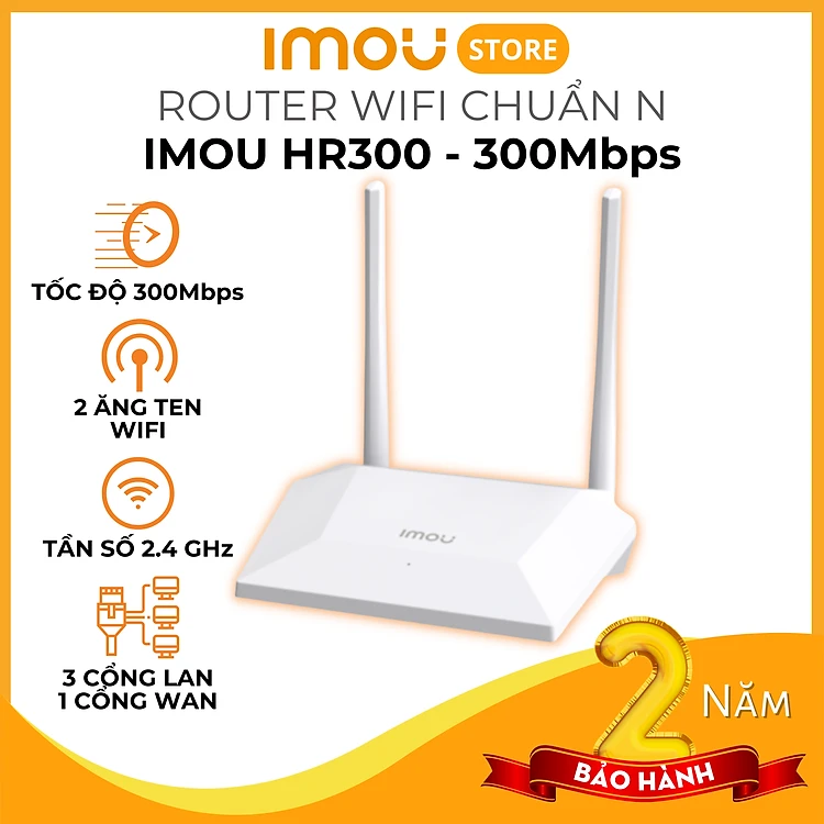 Router wifi Imou HR300 chuẩn N 300Mbps - Hỗ trợ 1 cổng WAN, 3 cổng LAN, tốc độ cao - Hàng chính hãng