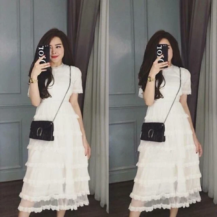 Váy xếp tầng thun phối ren vô cùng sang chảnh và lịch sự.