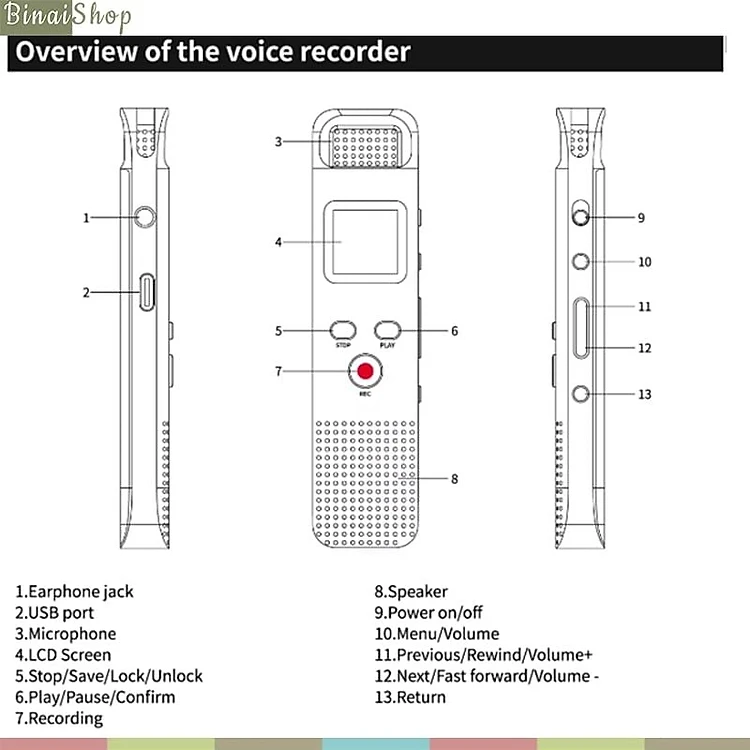 Ruizu V01 / V02 - Máy Ghi Âm Đa Hướng 1536 Kbps, Giảm Tiếng Ồn, Thời Lượng Ghi 11H (64GB) - Hàng Chính Hãng