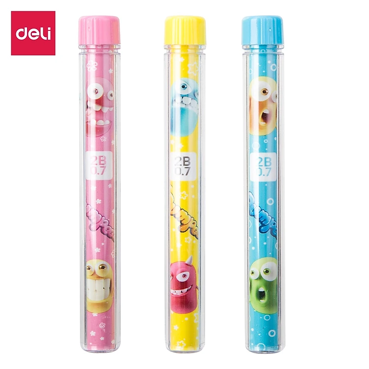 Ruột Bút Chì 2B Deli X Bumpees - 0.5Mm/0.7Mm - Ngòi Chì Kim - Xanh, Hồng, Vàng - Màu Ngẫu Nhiên - 2 Ống - EU67200 / EU67