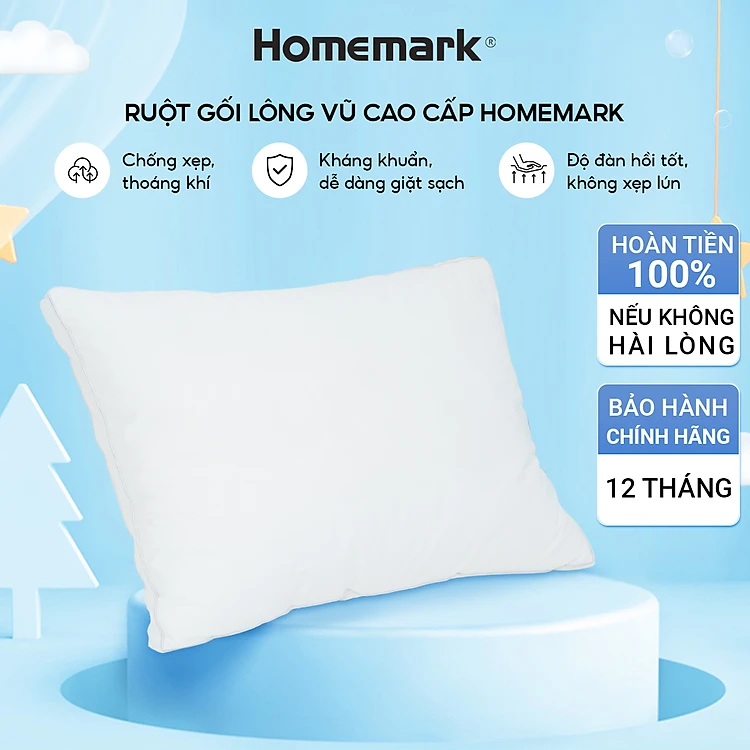 Ruột Gối Lông Vũ Nhân Tạo Homemark - Êm Ái, Thoáng Khí, Chống Bám Bụi, Chống Xẹp Lún, Hỗ Trợ Giấc Ngủ Ngon - 50x70cm