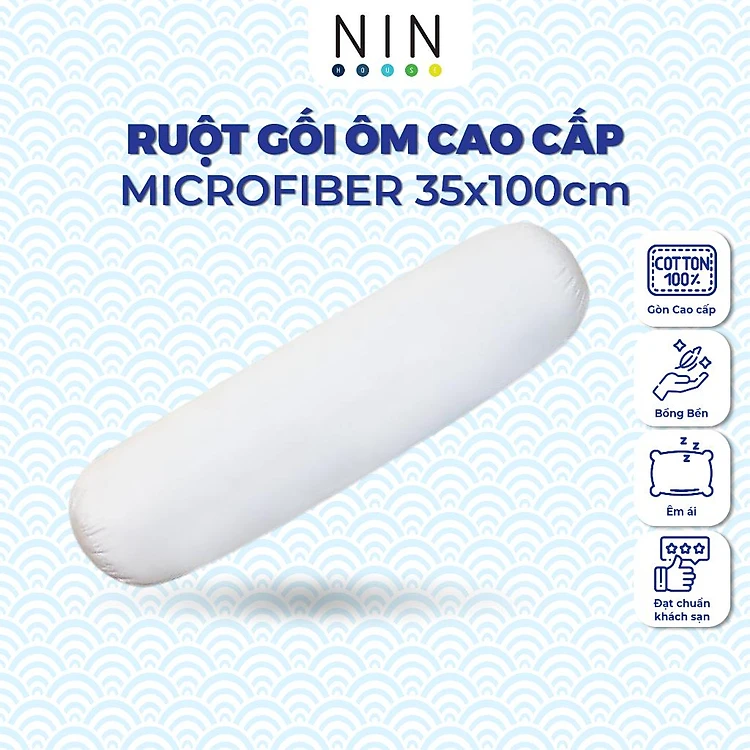Ruột gối ôm cao cấp 35x100 cm NIN House (1 cái) cho người và trẻ em đều dùng được, gòn microfiber