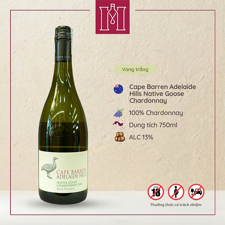 Rượu vang trắng Úc Cape Barren Adelaide Hills Native Goose Chardonnay 750ml 13% nhập khẩu - Hàng Chính Hãng